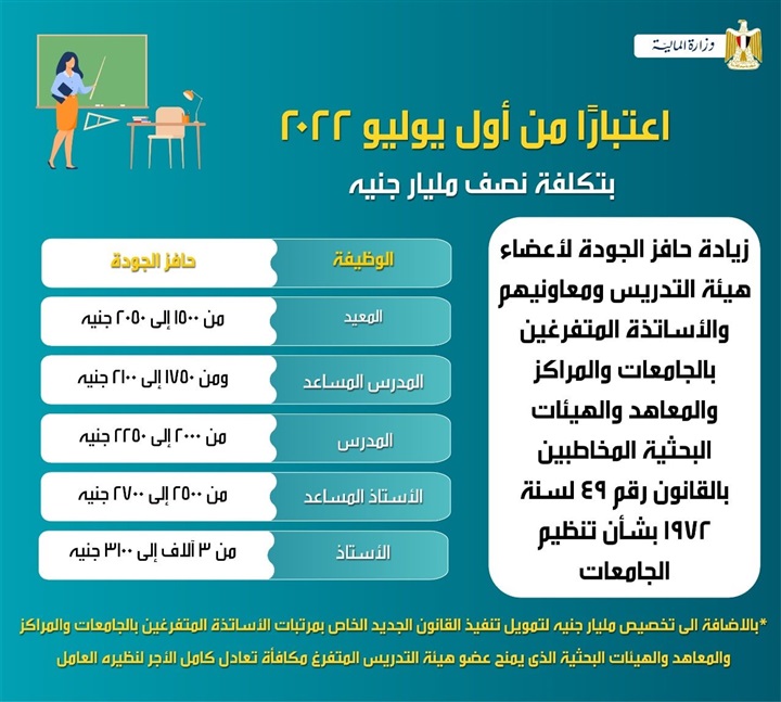 للموظفين وهيئة التدريس.. تفاصيل زيادة الأجور من أول يوليو