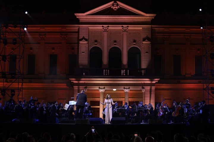 خطفت النجمة أنغام قلوب جمهورها في القاهرة بأولى حفلاتها الغنائية داخل قصر عابدين التاريخي في وسط البلد.