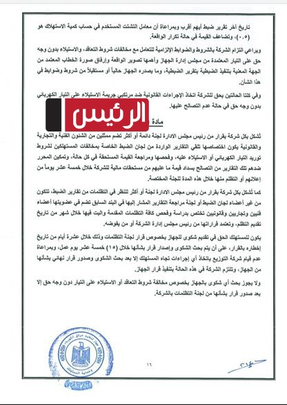 وفي حالة تظلم المستهلك لجهاز تنظيم مرفق الكهرباء وحماية المستهلك يقوم بالرد