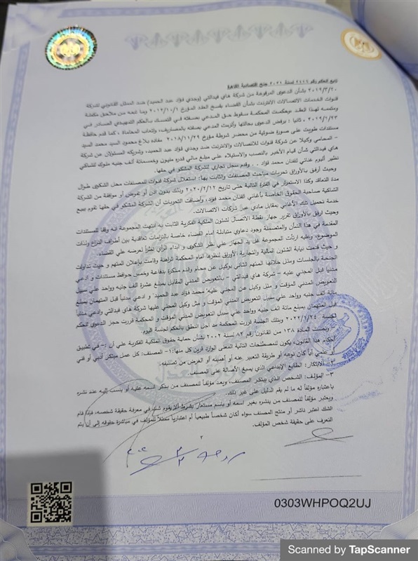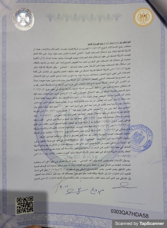 قضت الدائرة الثالثة جنح اقتصادية القضية رقم 2116 لسنة 2021 جنح اقتصادي ببراءة مديرا شركة قنوات لخدمات الاتصالات والانترنت من الاتهامات التى وجهها اليهم الفنان محمد فؤاد وشقيقة وجدى فؤاد صاحب شركة هاى فديلتى.