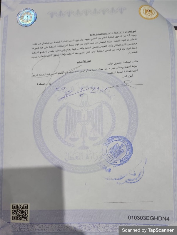 صدر الحكم برئاسة المستشار محمود عابدين وعضوية المستشارين إبراهيم صالح ووائل غانم وبحضور السيد محمود محمد وكيل النيابة وسكرتيرة عماد رمضان.