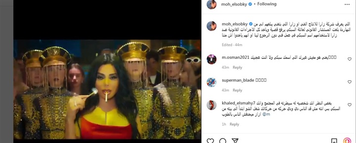 و نشر عبر حسابه الرسمي بموقع تبادل الصور والفيديوهات الشهير "إنستجرام"، برومو الكيب المطربة زارا، وعلق عليه، قائلا:"اللي يعرف شركة زارا للانتاج الفني او زارا اللي بتغني يبلغهم اني من النهاردة بلغت المستشار القانوني لعائلة السبكي يرفع قضية ويأخذ كل الإجراءات القانونية ضد زارا لاستخدامهم اسم السبكي في عمل فني دون الرجوع لينا او انهم يأخذوا اذن مننا".