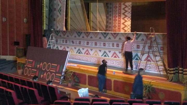 وعن تصميمات هذا العام أوضح فتحي، إنه تم عمل العديد من التصميمات، والتي اختلفت التصميمات مع تغير مكان حفل الأفتتاح وبعد الاتفاق على قلعة المؤتمرات تم تصميم الديكور من خلال الزخارف الهندسية الأفريقية والتى اجتمعت فى تلك التصميمات اشكال مختلفة من افريقيا".