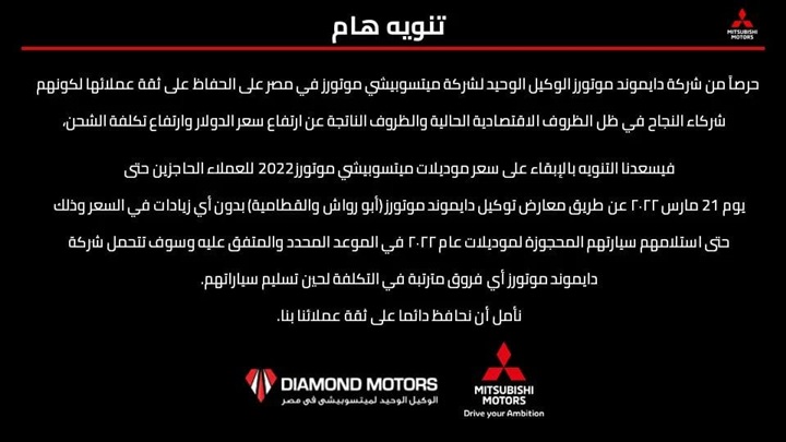 وكان وكيل ميتسوبيشي قد اعلن عن الأسعار الجديدة لسيارتي ميتسوبيشي بزيادة قيمتها