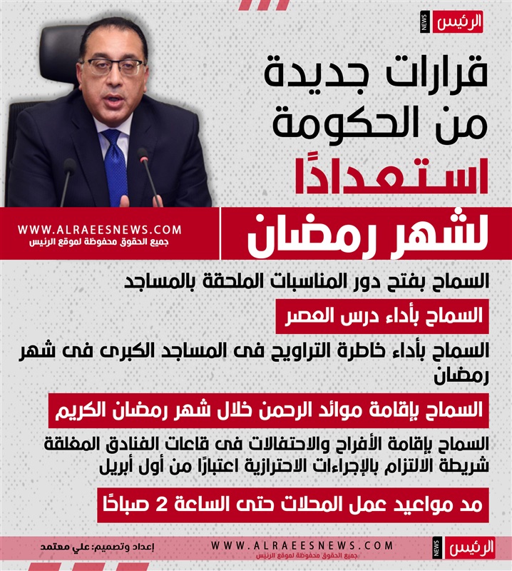 انفوجرافيك| 6 قرارات جديدة من الحكومة استعدادًا لرمضان