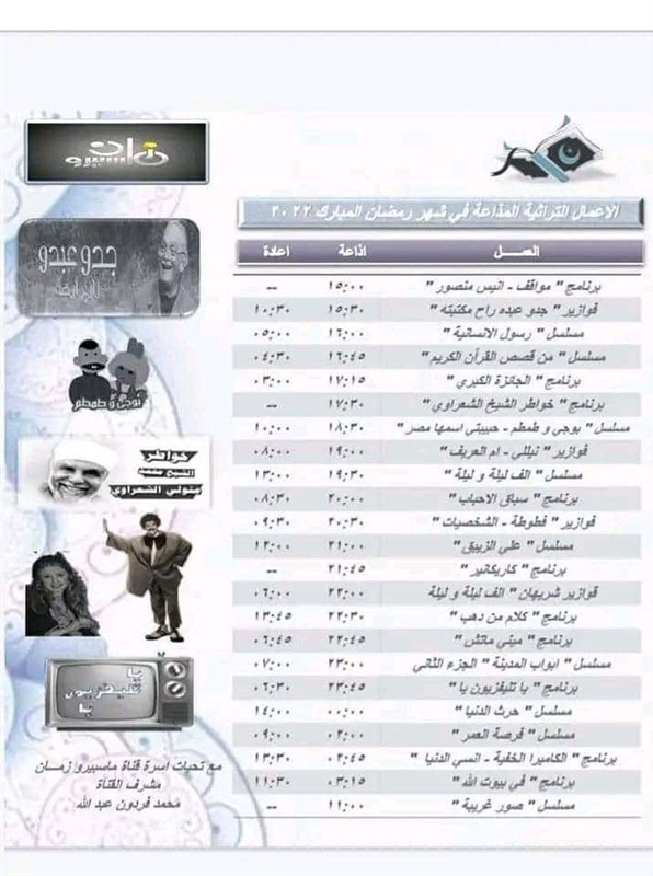 جدول البرامج والمسلسلات والفوازير على ماسبيرو زمان في رمضان 2022: