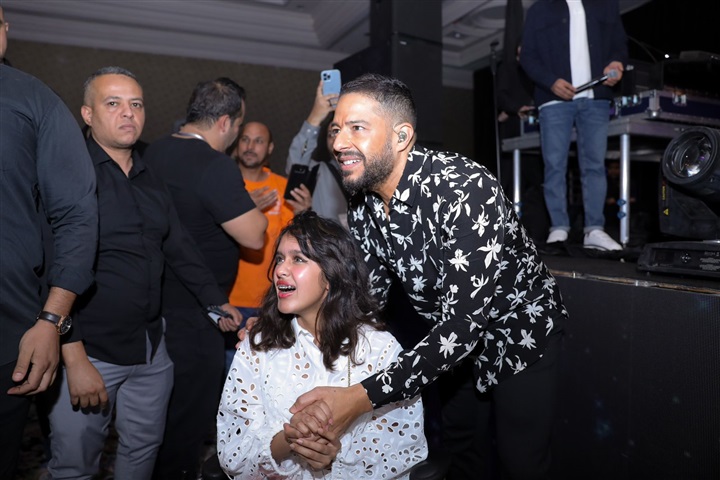 وحرص حماقي على ايقاف فقرته من أجل التقاط صورة مع احدي معجباته من ذوي القدرات الخاصة والتي حرصت على الحضور من أجل مشاهدة نجمها المفضل والاستمتاع باغانيه المميزة.