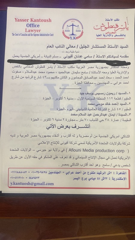 تقدم المنتج الأمريكي سامي عدنان افيوني وهو أمريكي الجنسية من أم مصرية، ببلاغ للنائب العام اتهم خلاله كل من المنتج ريمون رمسيس يوسف جيد والمخرج أحمد خالد موسى وزوجته السيدة إيمان عبدالرحمن عبدالسلام بالنصب والاحتيال.