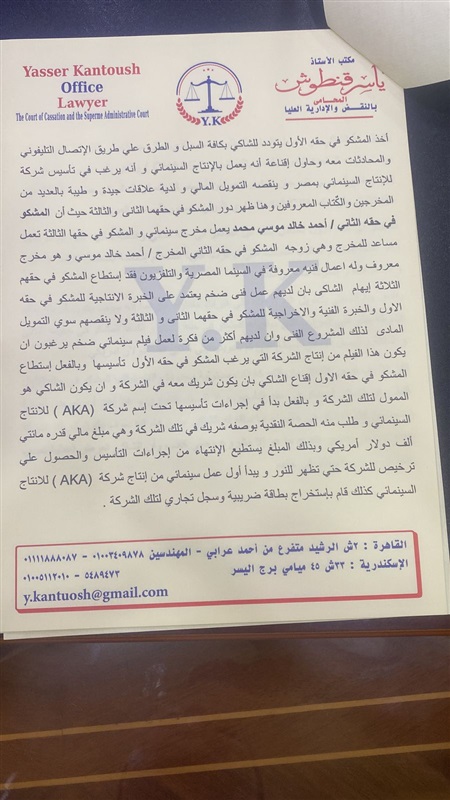 المخرجين والكتاب المعروفين وهنا ظهر المشكو في حقهما الثاني المخرج أحمد خالد