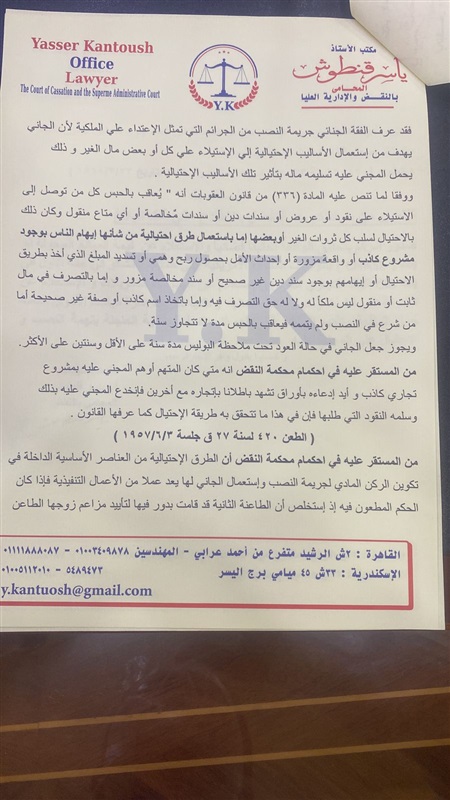 أساليب النصب والاحتيال التي تواترت عليها المحاكم استعان بشخص لتأكيد مزاعمه وقد ساعدته واشتركا