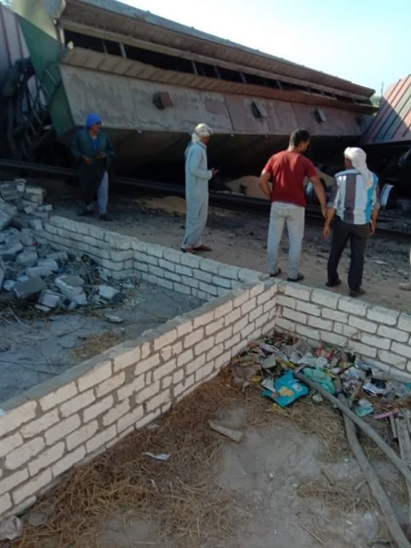 بالصور| مصرع سيدة جراء خروج قطار بضائع عن مساره واصطدامه بمنزل في البحيرة