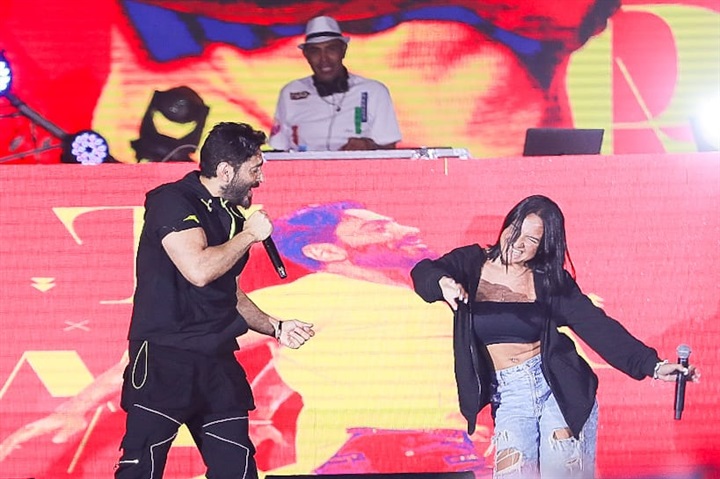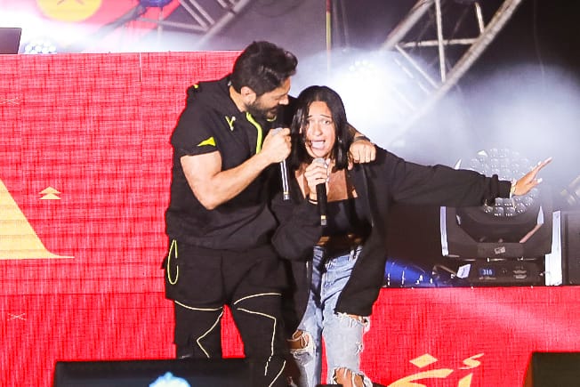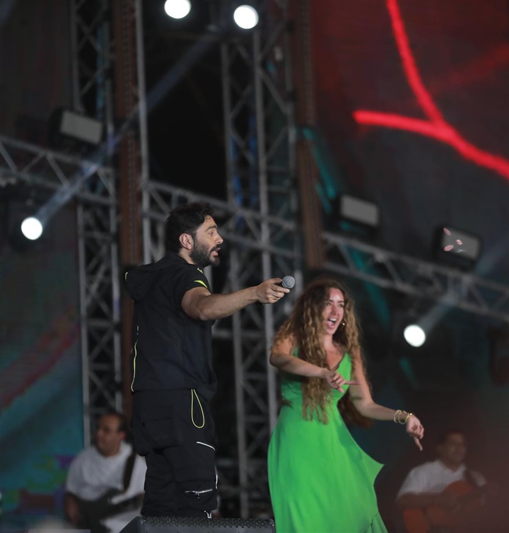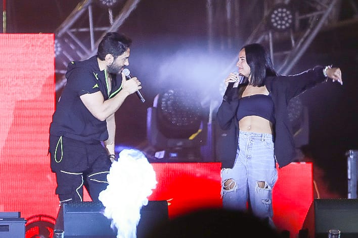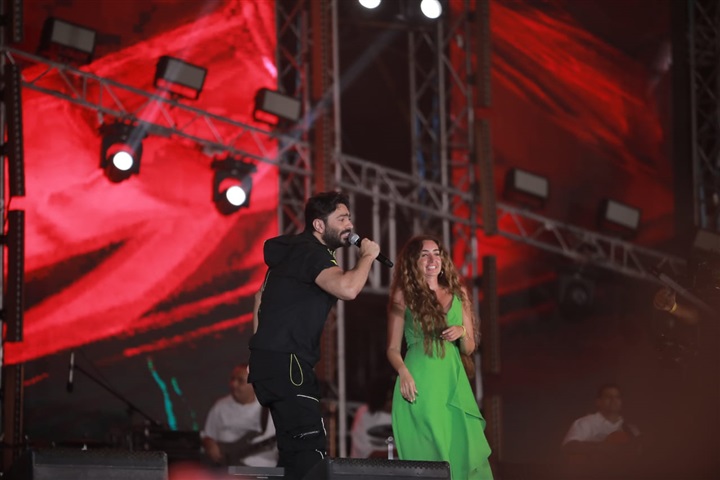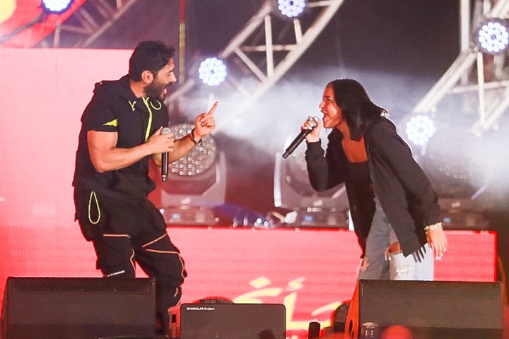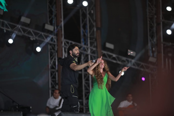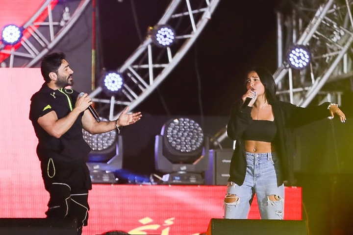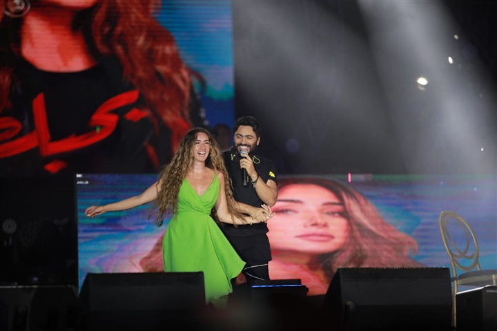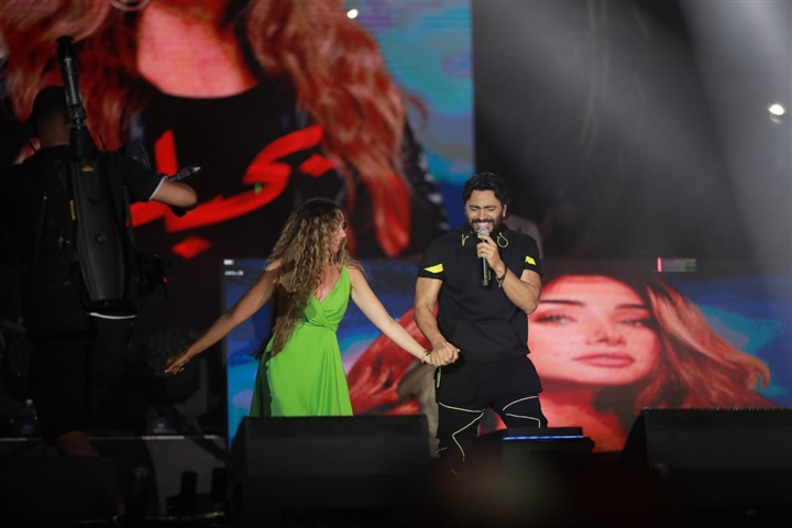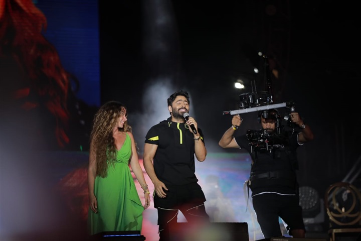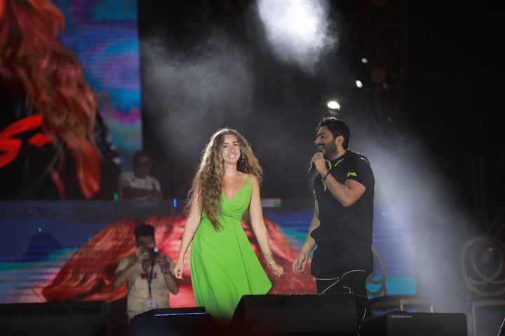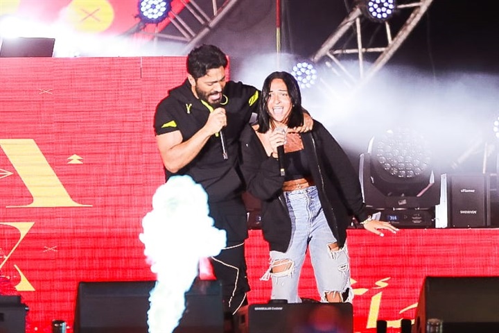 هنا الزاهد تشارك تامر حسني الرقص بحفل جماهيري في إطلاق "عشأنجي" (صور)