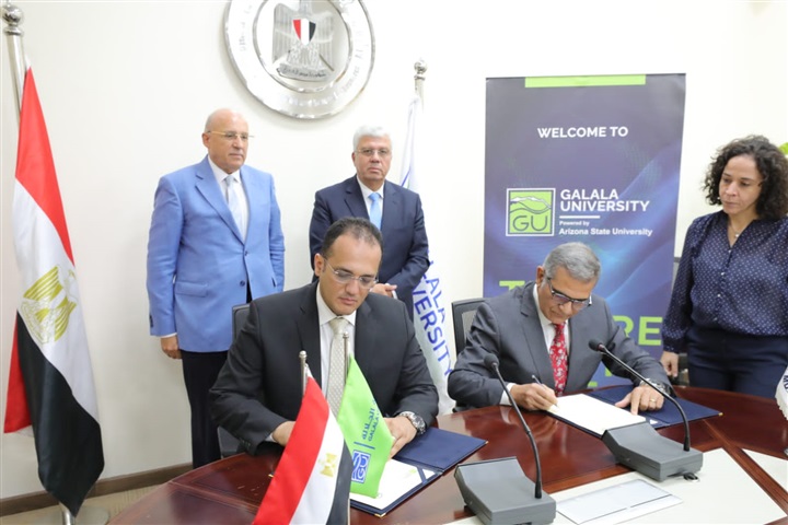 ووقع البروتوكول، د.أشرف حيدر القائم بأعمال رئيس جامعة مصر للعلوم والتكنولوجيا، ود.محمد الشناوي القائم بأعمال رئيس جامعة الجلالة.