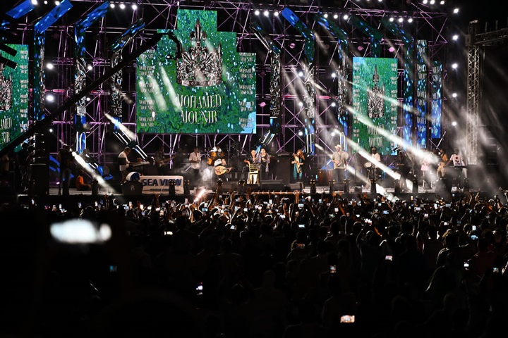 أحيا الكينج محمد منير واحدة من أضخم حفلات الساحل الشمالي لصيف 2022 وذلك خلال إفتتاح أولى فعاليات مهرجان رأس الحكمة الغنائي ب "سي فيو" بحضور الآلاف من محبيه من مختلف الجنسيات العربية.