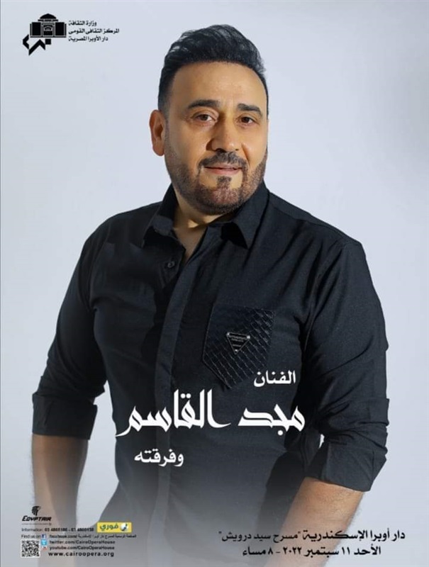 يحيي المطرب السوري مجد القاسم بصحبة فرقته الموسيقية يوم الاحد الموافق الحادي عشر من سبتمبر الساعة الثامنة مساء حفلة جديدة ضمن برنامج مهرجان دار اوبرا الاسكندرية على مسرح سيد درويش التابع لوزارة الثقافة المصرية.