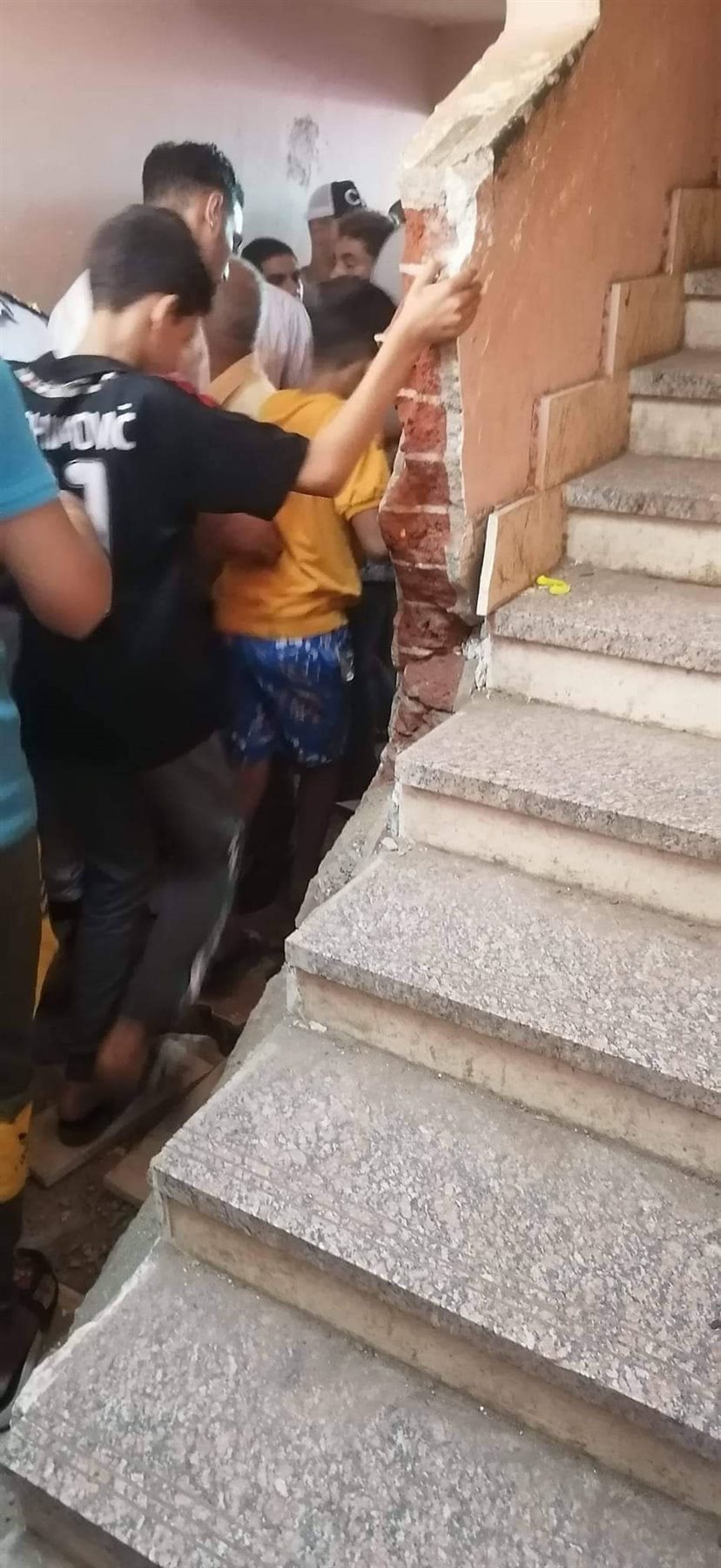 وتبين من المعاينة حدوث تدافع بين الطالبات علي سلم المدرسة مما أدى إلى سقوط جزء من سور السلم على الطلاب.