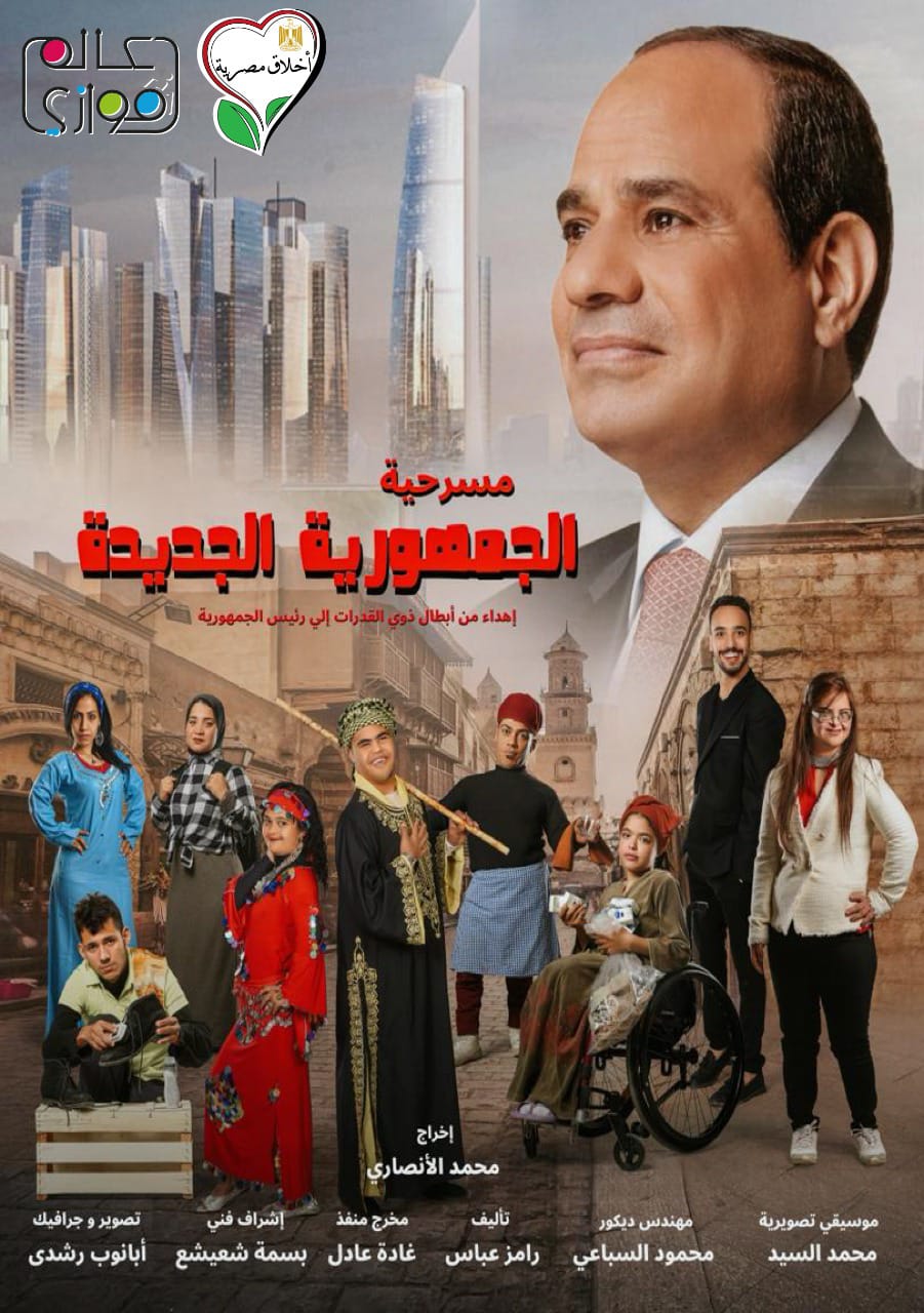 بدأت بروفات العمل المسرحي الأول لمؤسسة أخلاق مصرية وعالمها الموازي الذي يعمل علي دمج ذوي القدرات الخاصة في الفنون المعاصرة، وهو العمل المسرحي الأول لذوي الهمم الذي يوثق لإنجازات الرئيس عبد الفتاح السيسي، ويحمل العرض المسرحي اسم “الجمهورية الجديدة، ويشارك فيه أكثر من 60 ممثل غالبيتهم من ذوي الهمم، وهو من تأليف الكاتب الأصم الناطق رامز عباس وإخراج محمد الأنصاري.