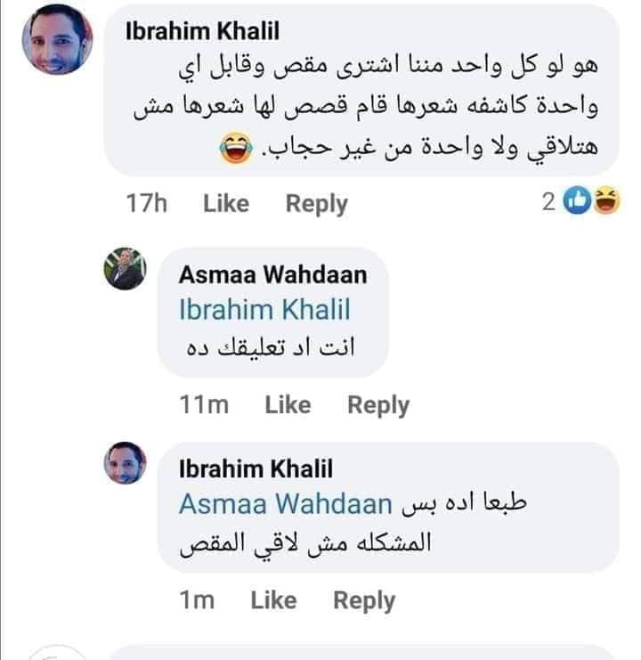 وفي التفاصيل، كتب «خليل» معلقا على «فيس بوك»: «لو كل واحد مننا اشترى مقص وقابل أي واحدة كاشفه شعرها، قام قصص لها شعرها مش هتلاقى ولا واحدة من غير حجاب».