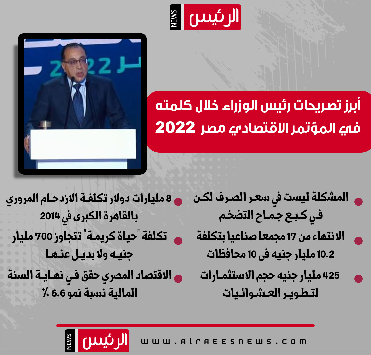 إنفوجراف| «الرئيس نيوز» يرصد أبرز تصريحات رئيس الوزراء في المؤتمر الاقتصادي