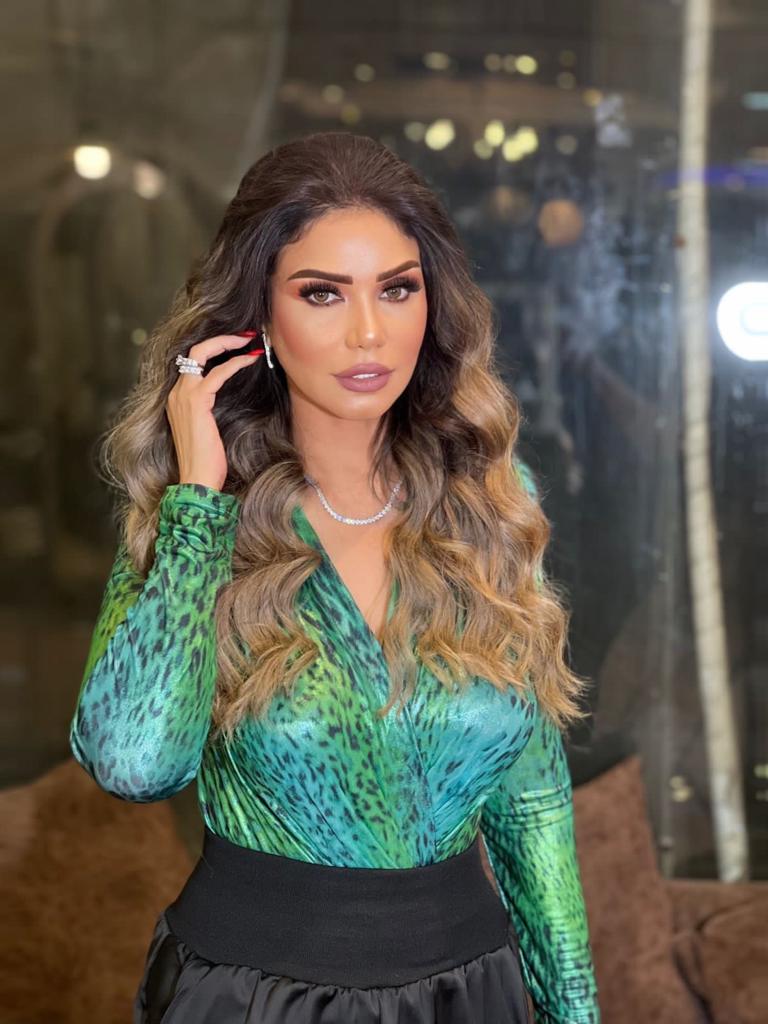 وخضعت لجلسة تصوير جذابة ومبهرة اتسمت بالخفة والدلال بلمسات حملت توقيع وليد التركي، حيث ارتدت جمبسوت باللونين الأخضر الزيتى والأسود، من إحدى دور الأزياء الفرنسية الشهيرة، تميز بأكمامه الطويلة وياقه مفتوحة على شكل حرف V.