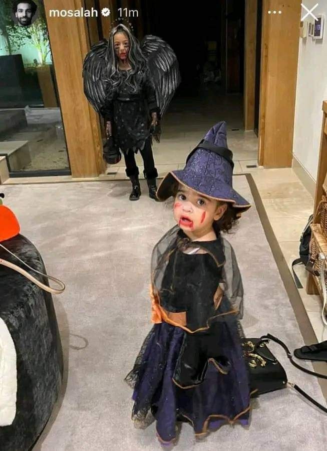 ونشر محمد صلاح صورة لابنتيه عبر حسابه الرسمي على موقع التواصل الاجتماعي «إنستجرام»، بزي متنكر احتفالًا بالهالوين.