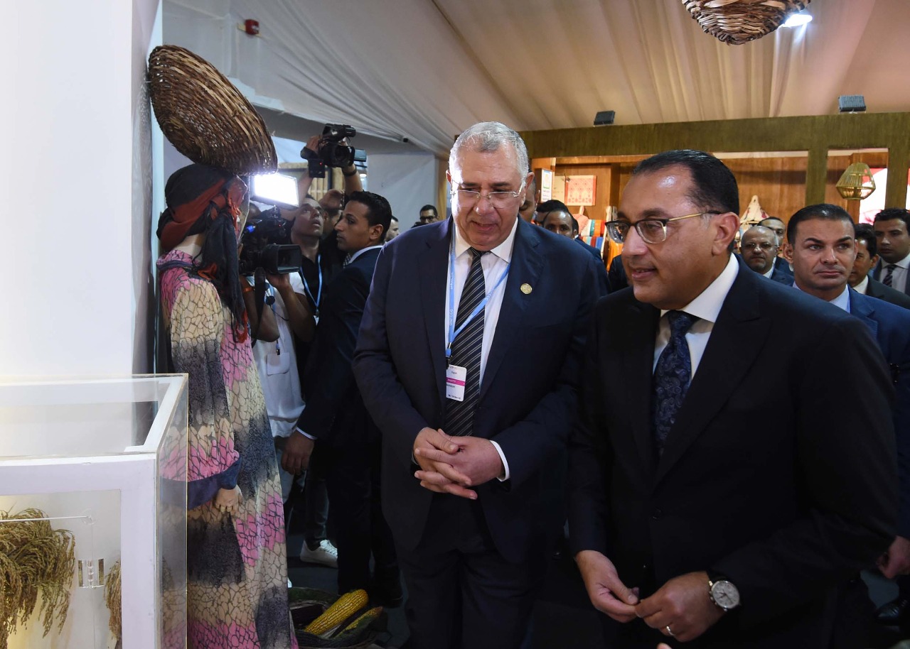 تفقد الدكتور مصطفى مدبولي رئيس مجلس الوزراء، يرافقه السيد القصير وزير الزراعة واستصلاح الأراضي، جناح وزارة الزراعة المقام على هامش قمة المناخ cop27 بالمنطقة الخضراء في مدينة شرم الشيخ.