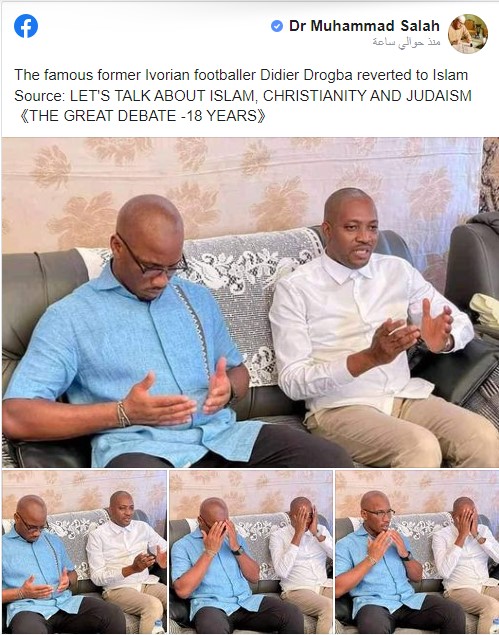 نشر داعية إسلامي يُدعى محمد صلاح، مجموعة من الصور لديدييه دروجبا، وكتب عليها أن الإيفواري قد اعتنق الإسلام.