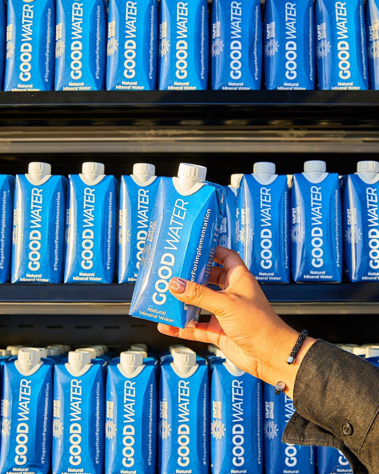 في العام الماضي، تم إلقاء 8. 2 مليون طن من النفايات البلاستيكية في البحر المتوسط، لذا تهدف شركة Good Water إلى تشجيع الجمهور لتغيير عاداته المتعلقة بشراء المياه، ليختار العبوات الكرتونية بدلًا من البلاستيكية.