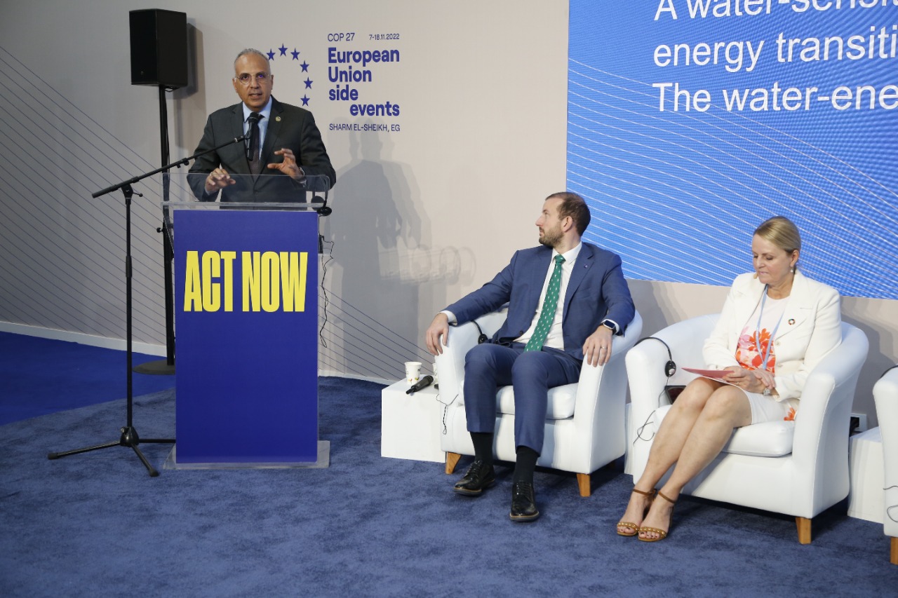 شارك الدكتور هانى سويلم وزير الموارد المائية والرى في جلسة "مسار المياه نحو الطاقة.. الترابط بين المياه والطاقة" والتي نظمها الإتحاد الأوروبى ضمن فعاليات مؤتمر المناخ COP27.