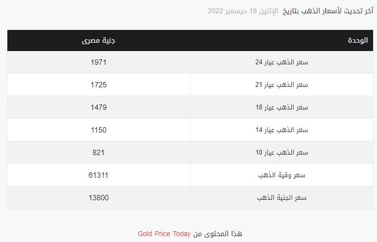 هبط سعر الذهب في بداية تعاملات اليوم الاثنين في مصر 19-12-2022، حيث انخفض الجرام 75 جنيها، مقارنة بمستواه أمس.