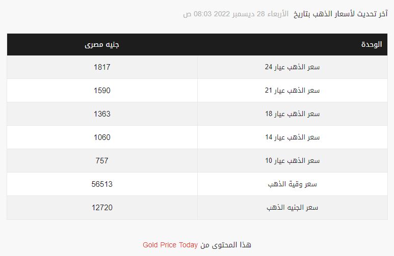 - سجل سعر الذهب عيار 24 نحو 1817 جنيها للجرام.