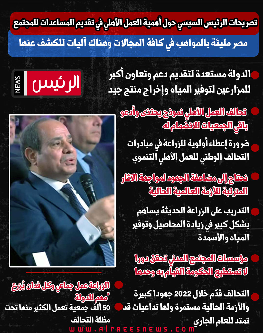 تصريحات الرئيس السيسي حول أهمية العمل الأهلي في تقديم المساعدات للمجتمع