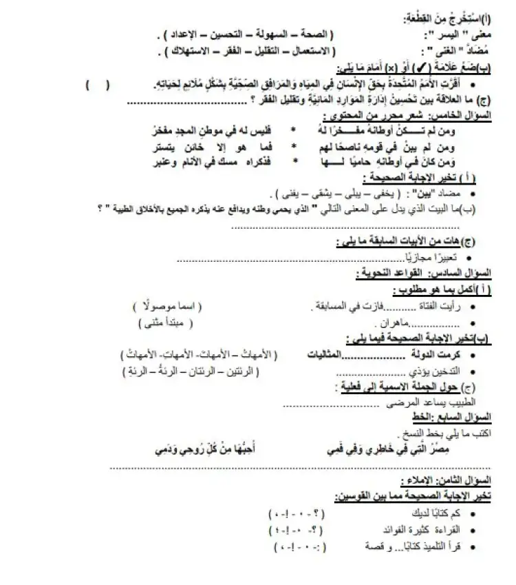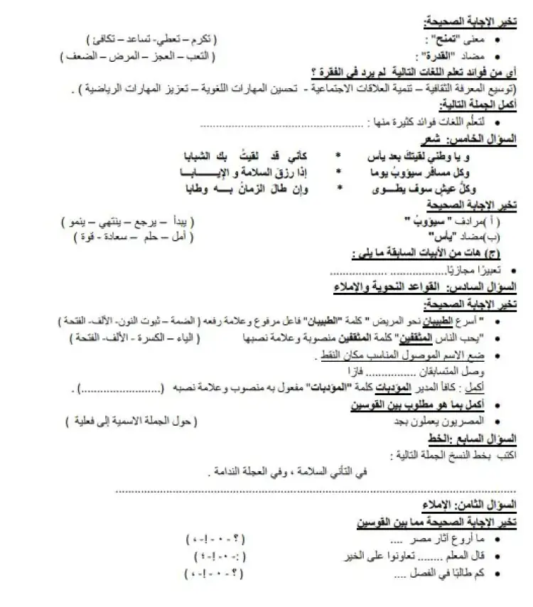 يستطيع طلاب وطالبات الصف الخامس الابتدائي الترم الاول 2023، الاطلاع علي نماذج الوزارة مادة لغة عربية، من خلال الصور التالية: