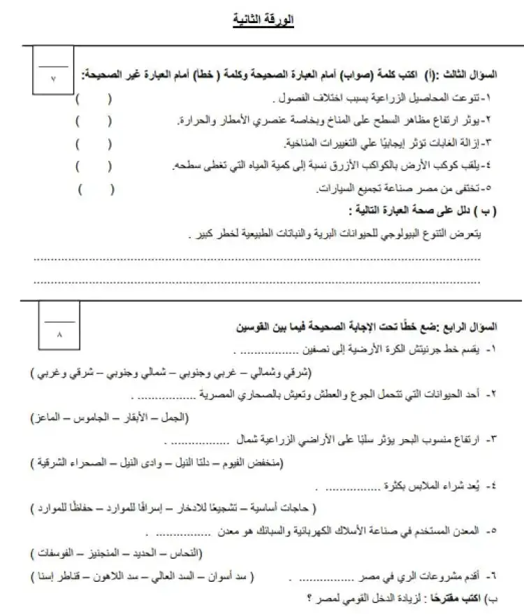 ومن أمثلة الاٍئلة الواردة في النماذج المرفقة بالأسفل ما يلي: