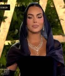 وظهرت جورجينا خلال الحفل بإطلالة محتشمة وعلى رأسها "حجاب"، مما لفت الأنظار لها من الجمهور السعودي.