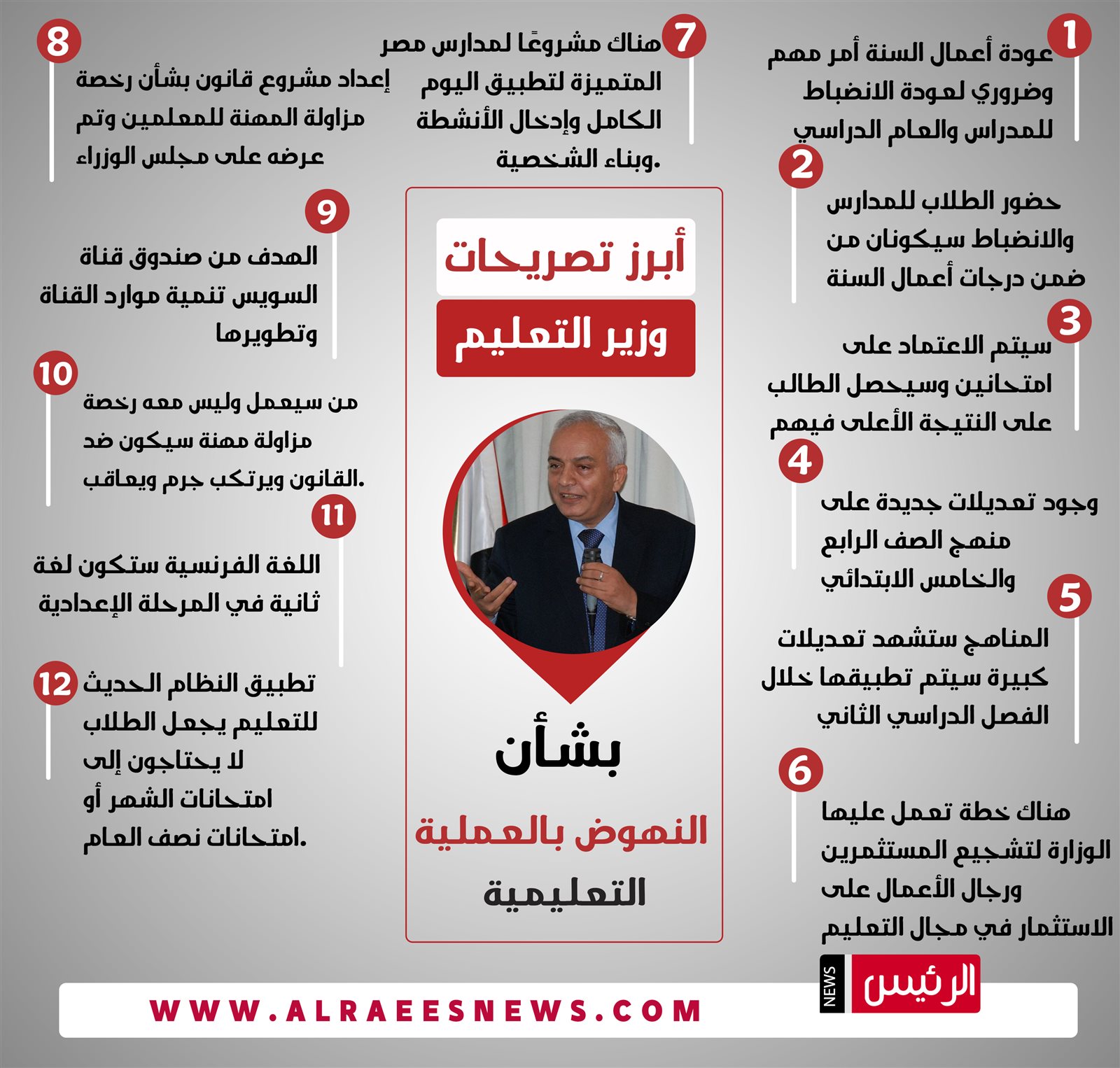 وجاءت أبرز تصريحات وزير التربية التعليم بشأن النهوض بالعملية التعليمية، كالتالي: