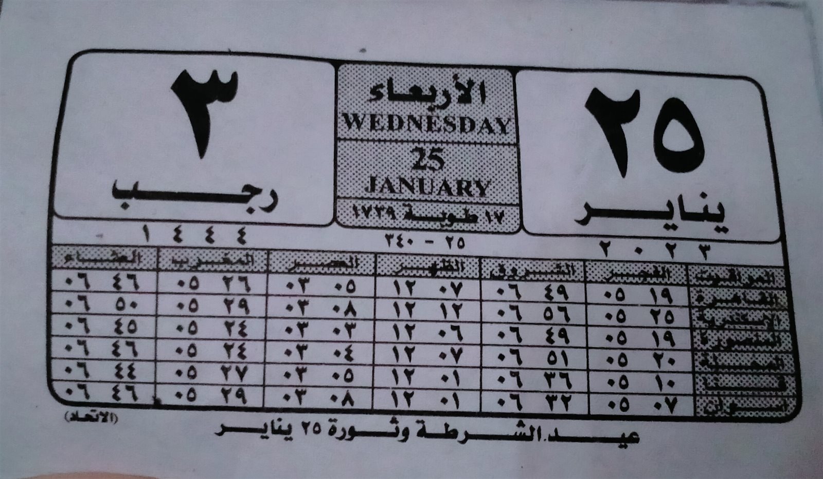 الاربعاء يوافق 25 يناير 2023م، في التقويم الميلادي.