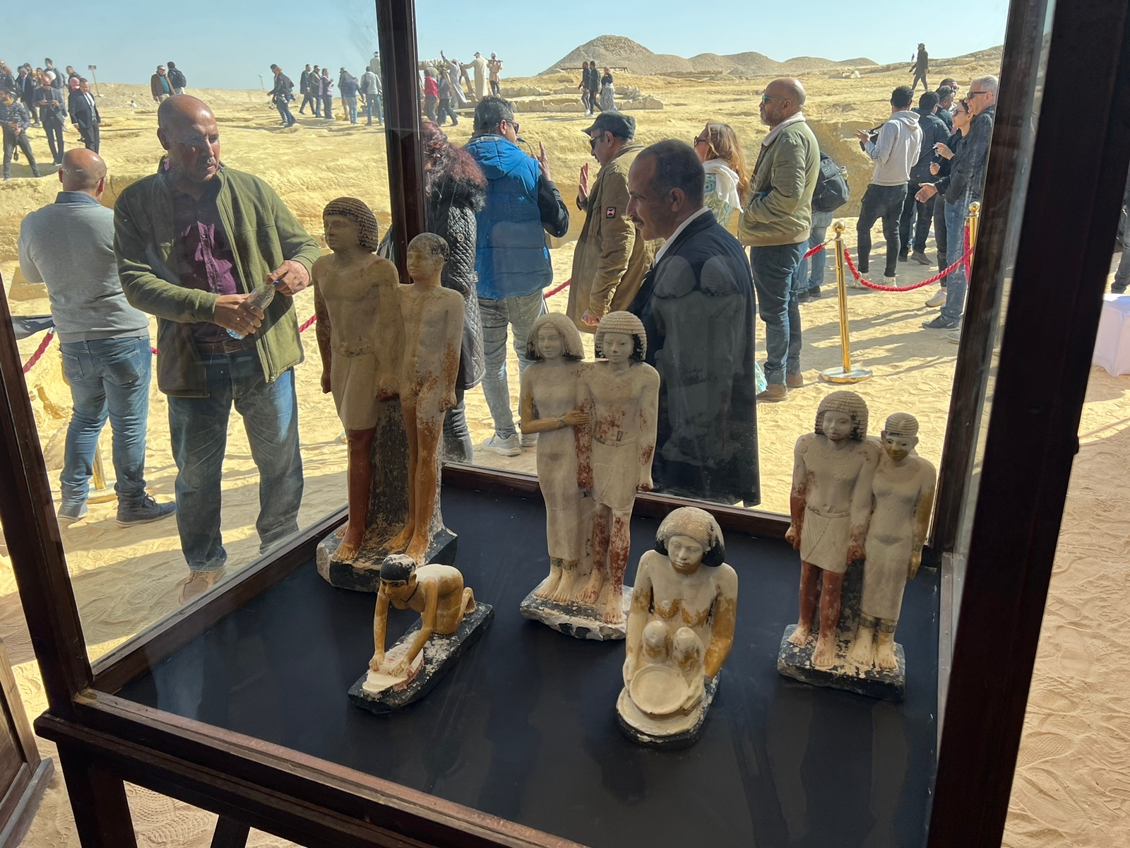 وتم العثور على مقبرة لكاهن المجموعة الهرمية للملك "ببى الأول"، وعثر على تسعة تماثيل من الحجر الجيرى الملون تمثل رجل بجواره زوجته وكذلك تماثيل خدم وتماثيل منفردة.
