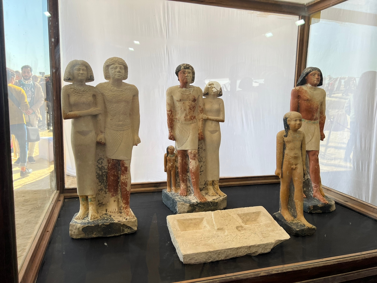 وتم العثور على تمثال لشخص يظهر واقفا وبجواره زوجته تمسك بقدمه والى الجانب الآخر ابنته تحمل أوزة.