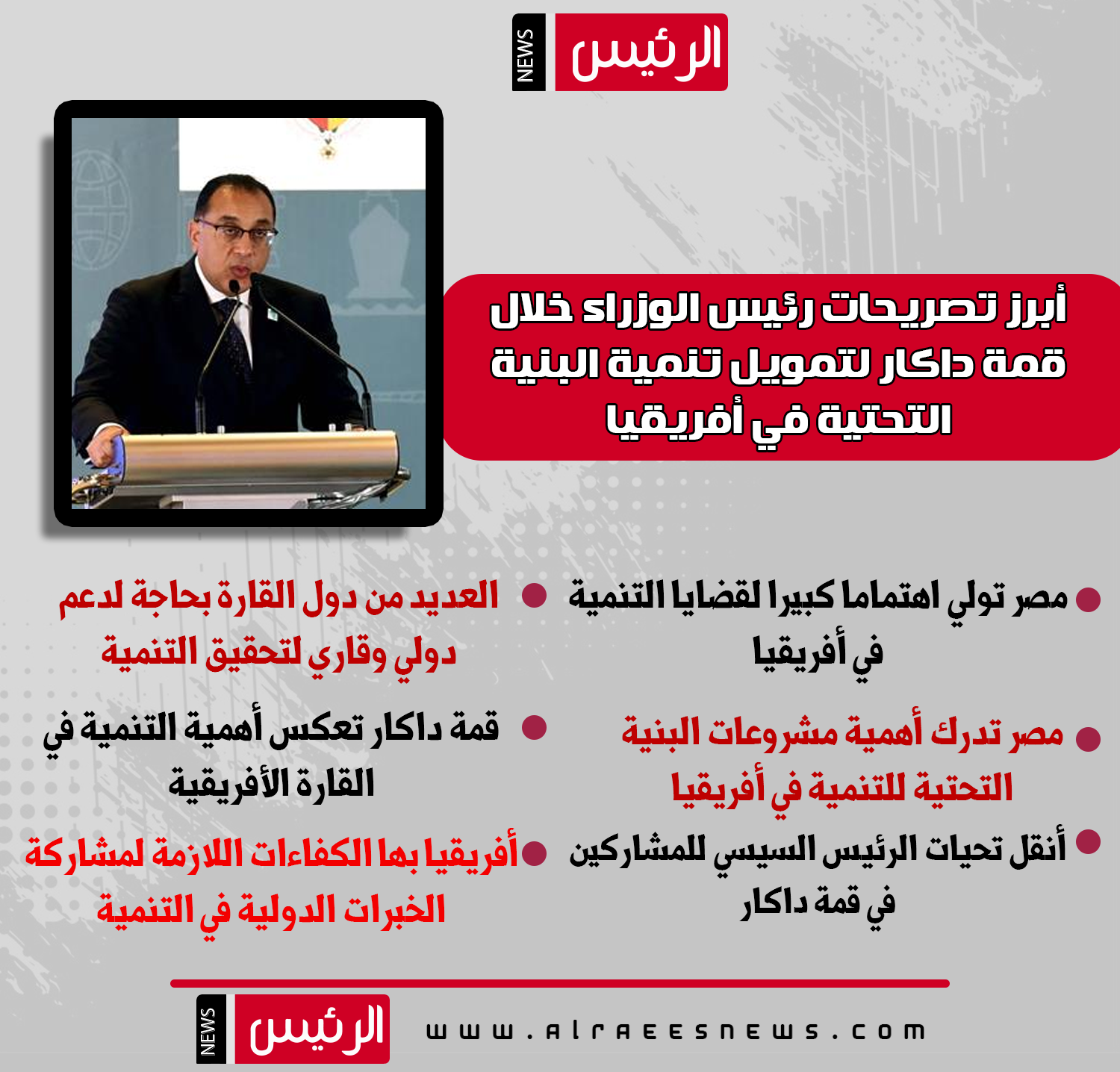 أبرز تصريحات رئيس الوزراء خلال قمة داكار لتمويل تنمية البنية التحتية في أفريقيا