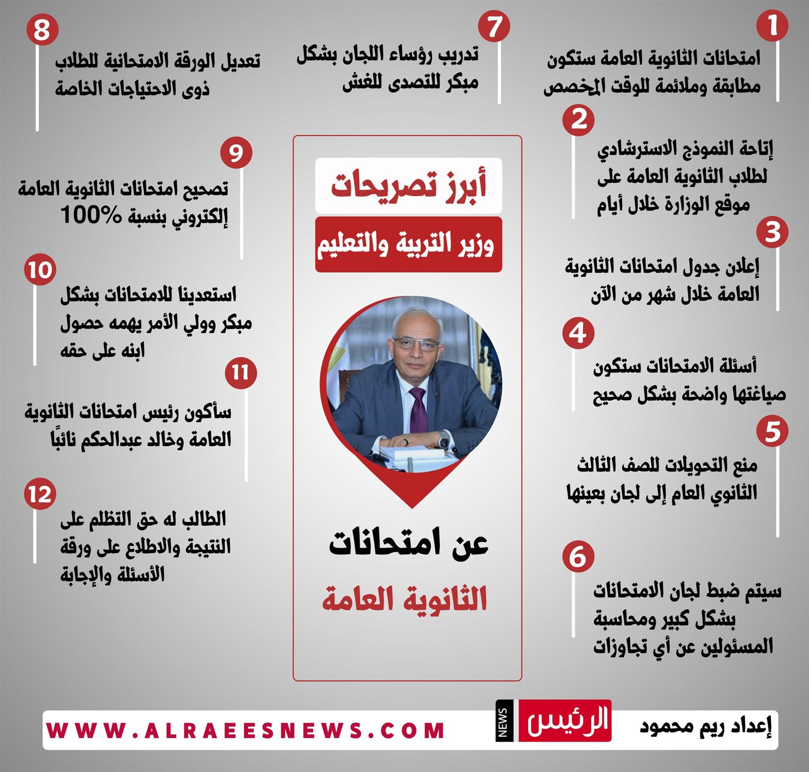 وفي سياق ذلك، نستعرض أبرز تصريحات وزير التعليم عن امتحانات الثانوية العامة 2023: