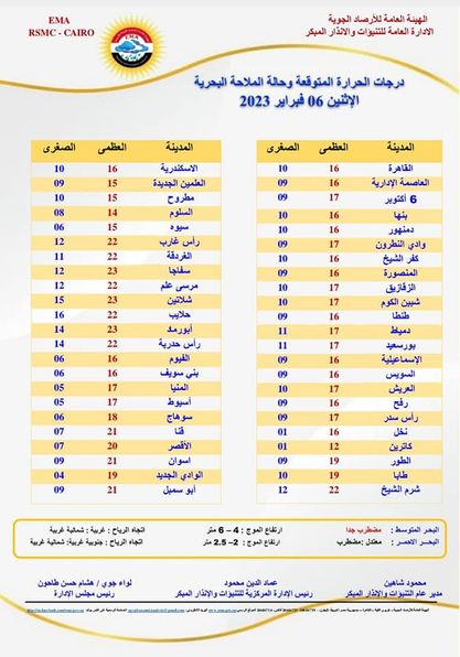 وعن درجات الحرارة المتوقعة فهي كالآتي: