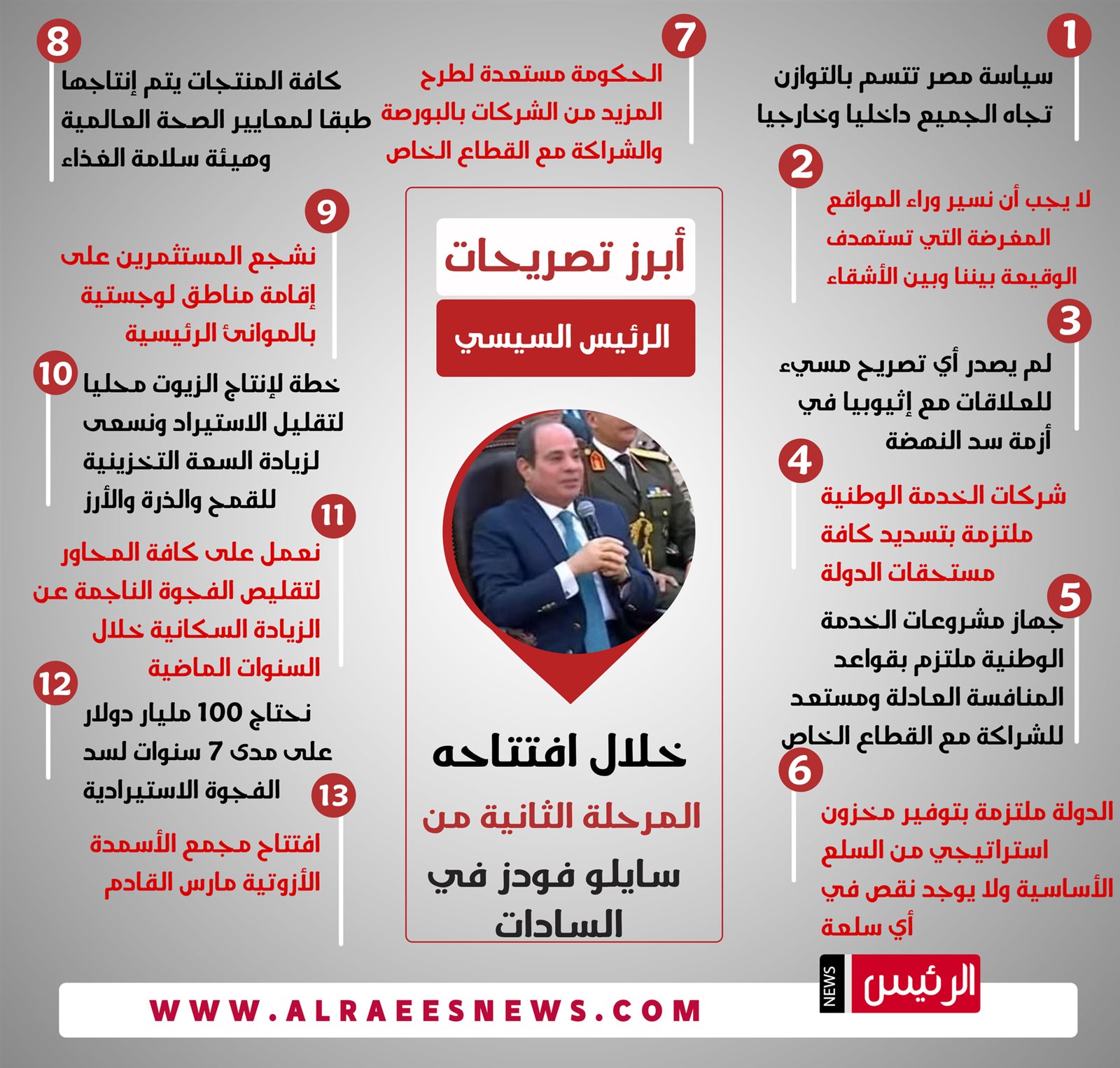 أبرز تصريحات الرئيس السيسي خلال افتتاحه المرحلة الثانية من "سايلو فودز" في السادات