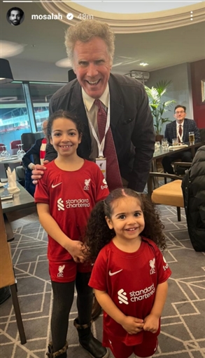 وفي التفاصيل، ظهر النجم الأمريكي ويل فاريل في الصورة وهو يضع يده فوق كتف زوجة محمد صلاح.