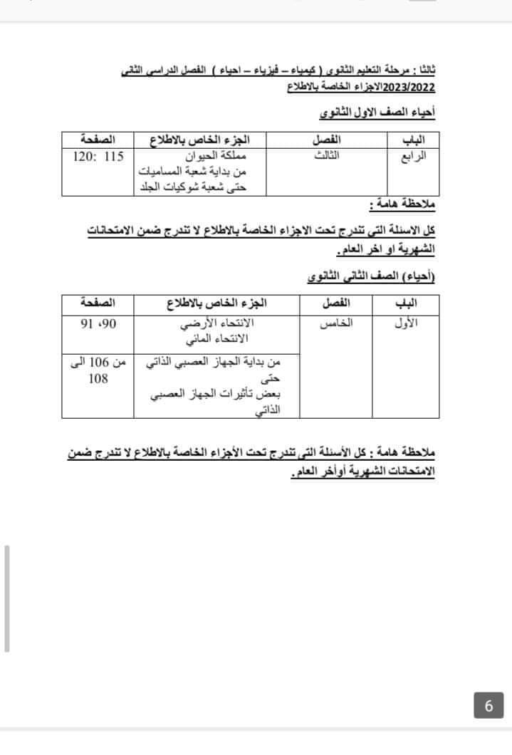 ننشر الأجزاء المحذوفة من منهج الكيمياء والفيزياء والأحياء لـ أولى وثانية ثانوي