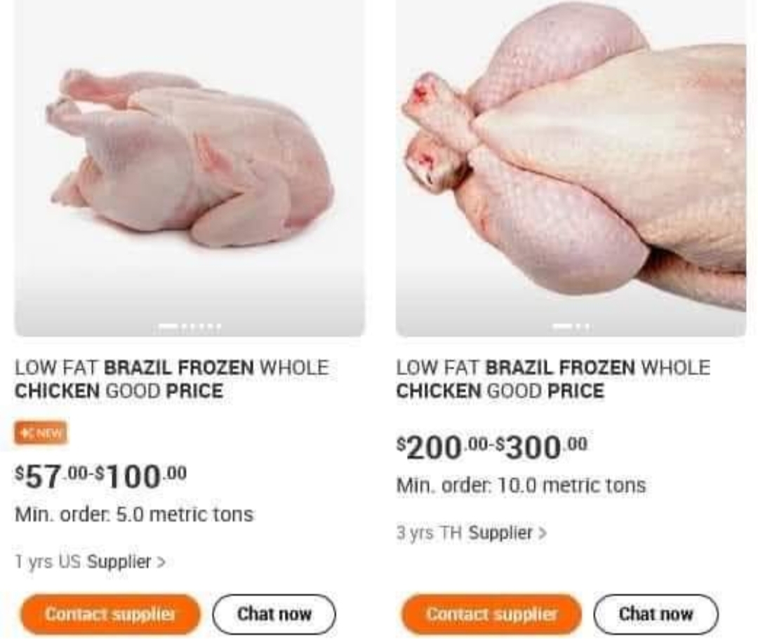يأتى ذلك فيما أكدت مصادر أن سعر طن الدواجن البرازيلي يبلغ 300 دولار ما يعنى أن سعر الكيلو لا يتعدى عشرة جنيهات، بينما يتم طرح الدواجن المستوردة من خلال منافذ التموين والمجمعات الاستهلاكية بسعر يبلغ 65 جنيهًا للكيلو الواحد بها.
