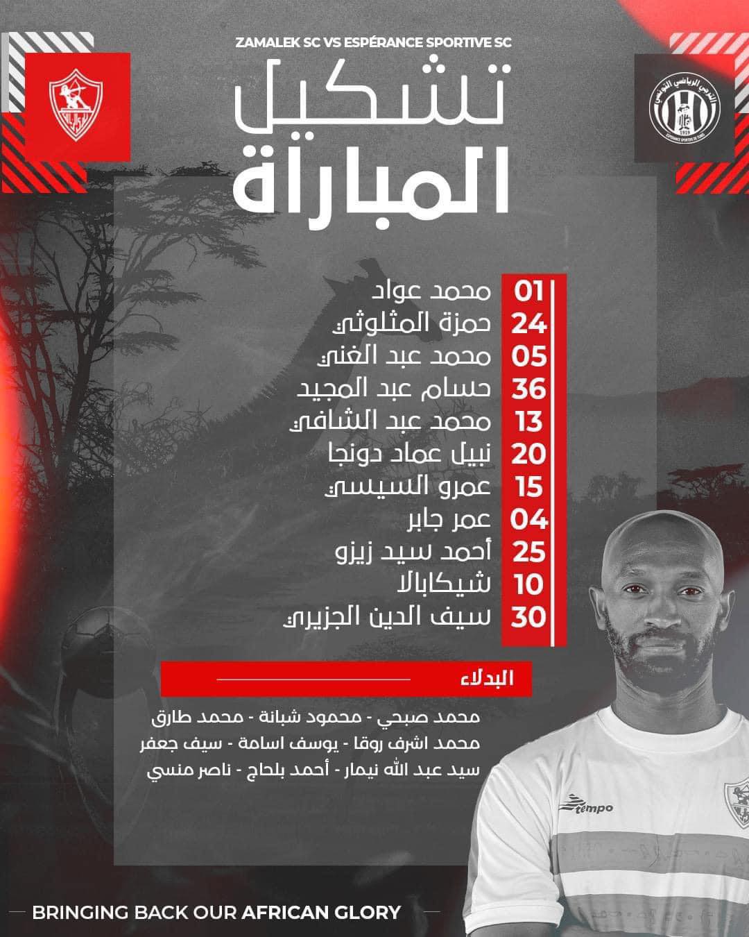 ويتواجد على مقاعد البدلاء كل من، محمد صبحي ومحمود شبانة ومحمد طارق ومحمد أشرف”روقا” وسيف جعفر وسيد عبد الله “نيمار” وأحمد بلحاج ويوسف أسامة نبيه وناصر منسي.