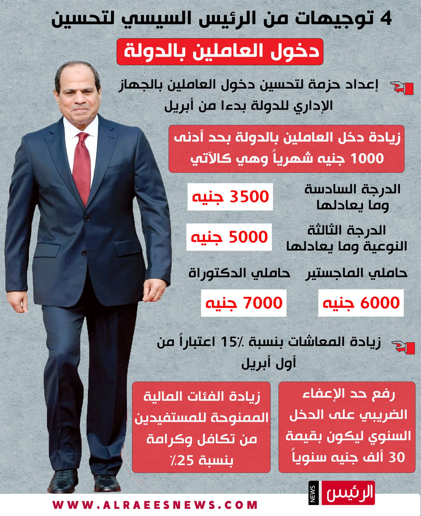 4 توجيهات من الرئيس السيسي لتحسين دخول العاملين بالدولة