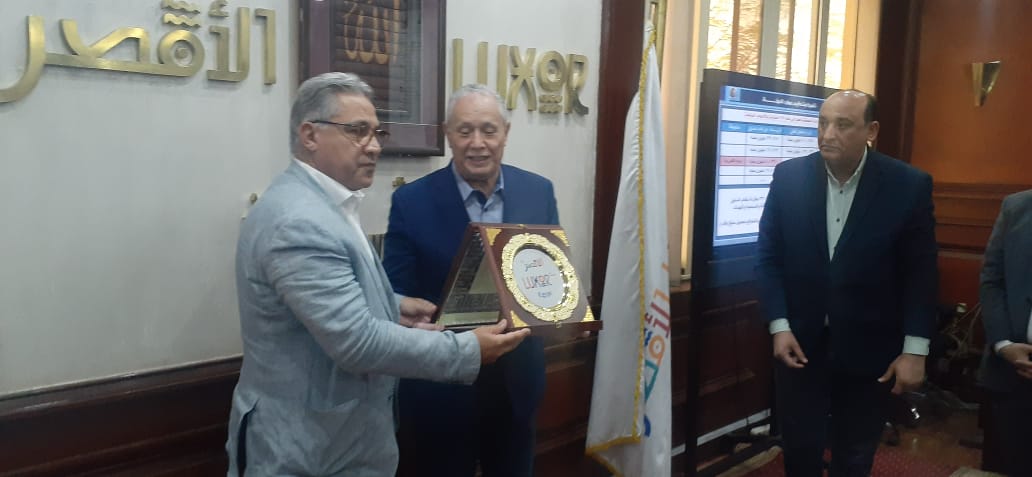 وأهدى المستشار مصطفى ألهم، درع المحافظة للنائب أحمد السجيني، رئيس لجنة الإدارة المحلية بمجلس النواب.