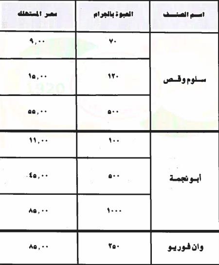 وتضمنت قائمة الأسعار الجديدة للمستهلك ما يلي: